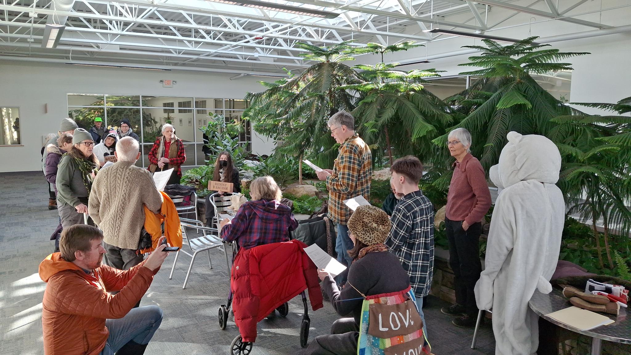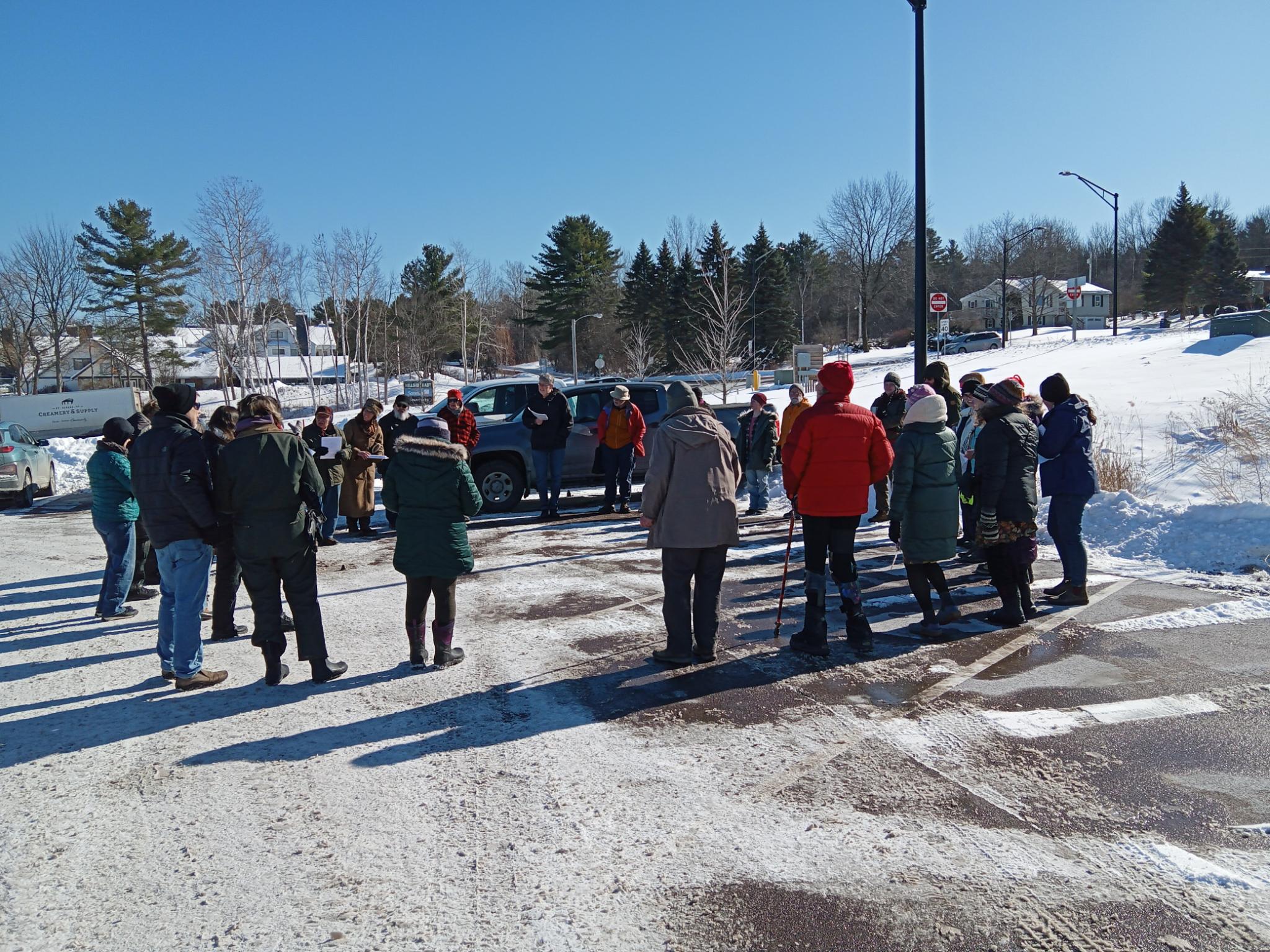 This action marked an escalation in an ongoing campaign to end Williston’s role as the national ICE surveillance nerve center. Throughout the fall and winter, community members have engaged in noise demos, art installations, and protests at Williston’s many DHS buildings. On Jan 22, a smaller group of elders performed a sit-in at White Cap Business Park in protest of the site’s role in identifying targets for ICE violence. When asked by White Cap property management to arrest the group, Williston Police refused, citing their first amendment right to protest at federal offices.