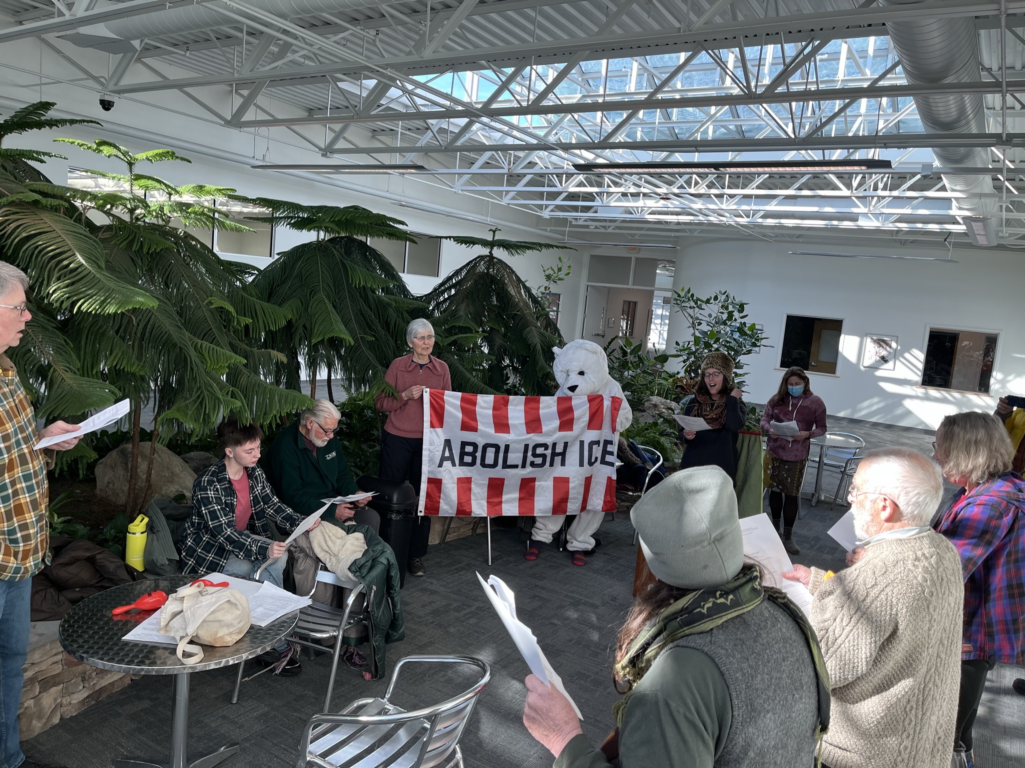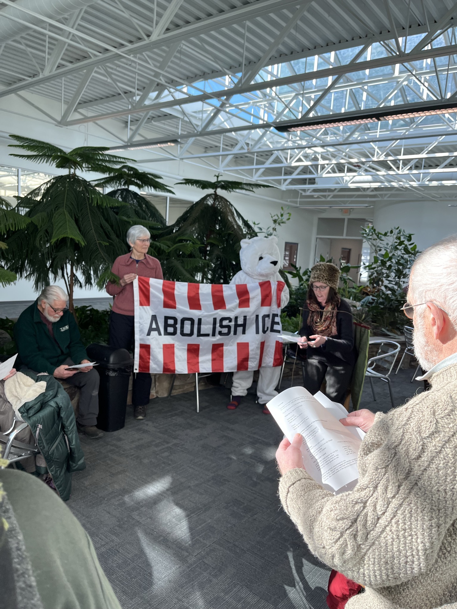 Those participating in Thursday’s sit-in were not representatives of any official group or organization, but simply community members concerned about the safety of their fellow Vermonters. Several participants expressed support for pending legislation that would ensure that all ICE detainees in Vermont had access to legal counsel, while others referenced initiatives to limit ICE surveillance and transition Williston DHS offices into affordable housing. All present voiced support for the shutdown of the National Criminal Analysis and Targeting Center, and expressed hope that their action would help others to find the courage necessary to get ICE out of Williston.